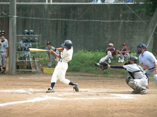 4番サード高橋の時に片桐盗塁で2・3塁、高橋倒れたが5番ファースト英がヒットを打ち2点先取。6番ピッチャー岸野はショートゴロ。